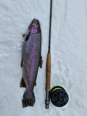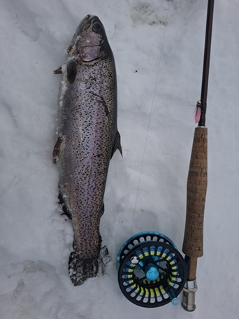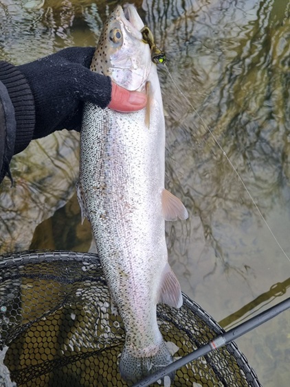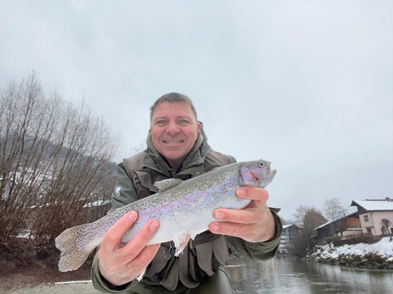 Herbert Sperlich konnte am 10.Dezember eine Regenbogenforelle mit 42cm