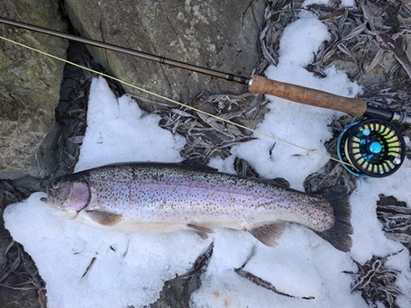 Mario Huber konnte am 16.März eine Regenbogenforelle mit 49cm