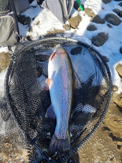 Herbert Sperlich konnte am 10.Dezember eine Regenbogenforelle mit 42cm
