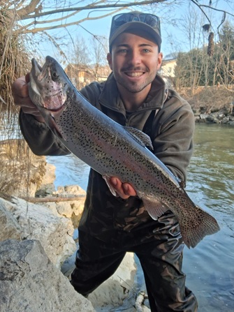 Simon Brandtner konnte am 18.März eine Regenbogenforelle mit 49cm